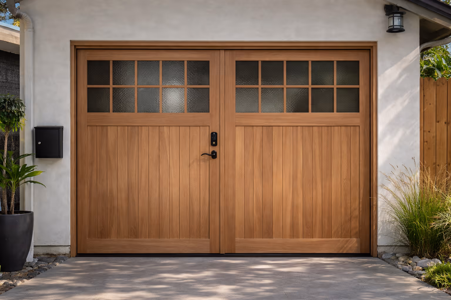 Fully customizable design — Choose from wood, aluminum, steel, or glass-infused panels in various finishes to match your home’s architecture while maintaining durability and style.